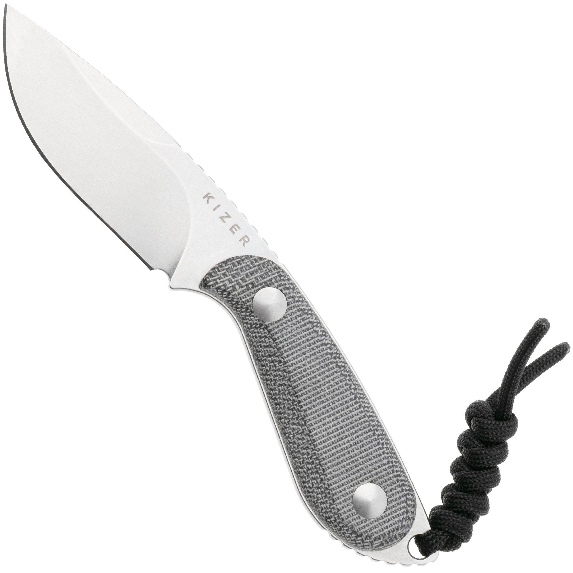 Kizer Buddy 1081A8 Satin 14C28N, Black Micarta, fixed knife, Maksim Epifantsev design
