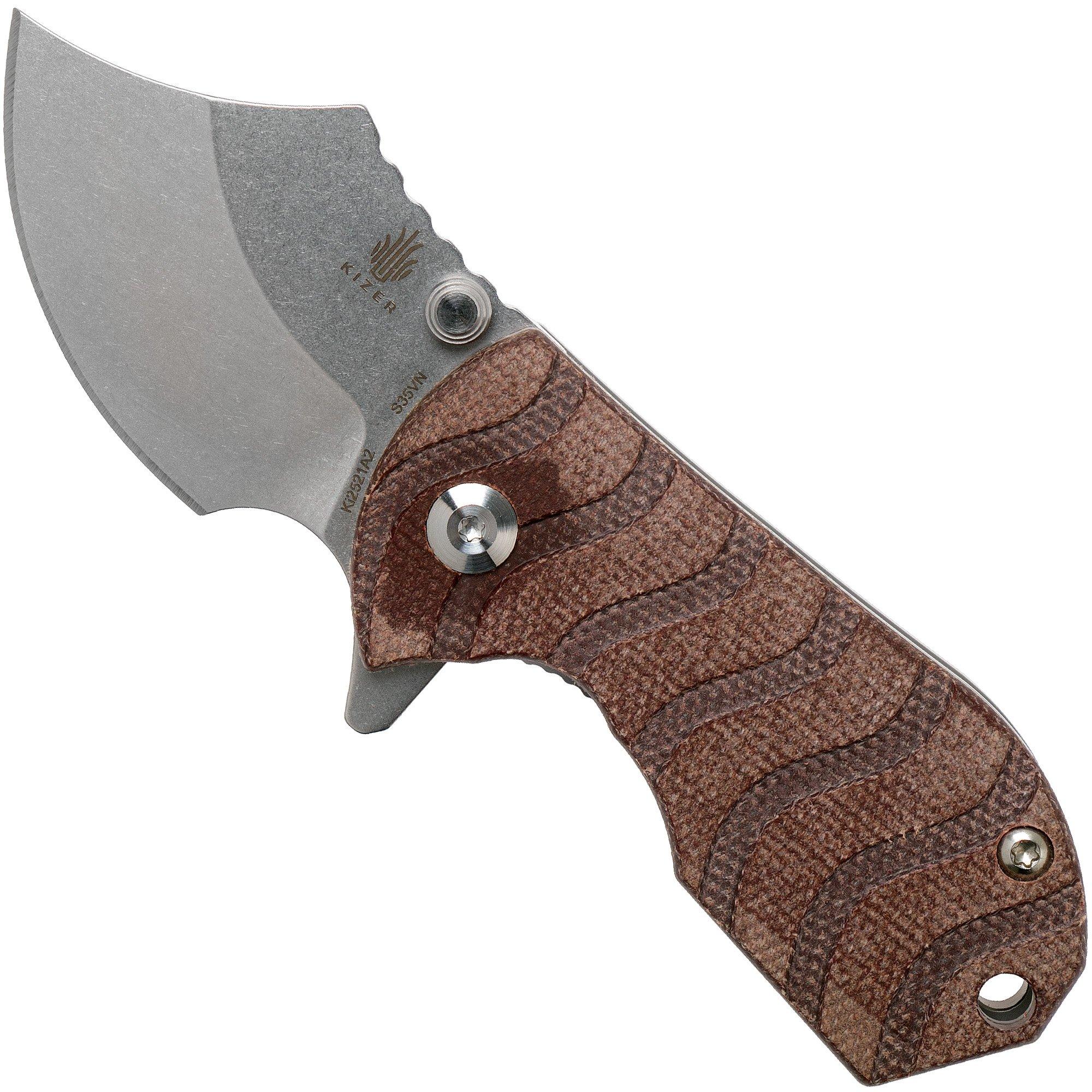 Kizer Flip Shank Ki2521A2 Brown Micarta pocket knife, Alex Shunnarah design