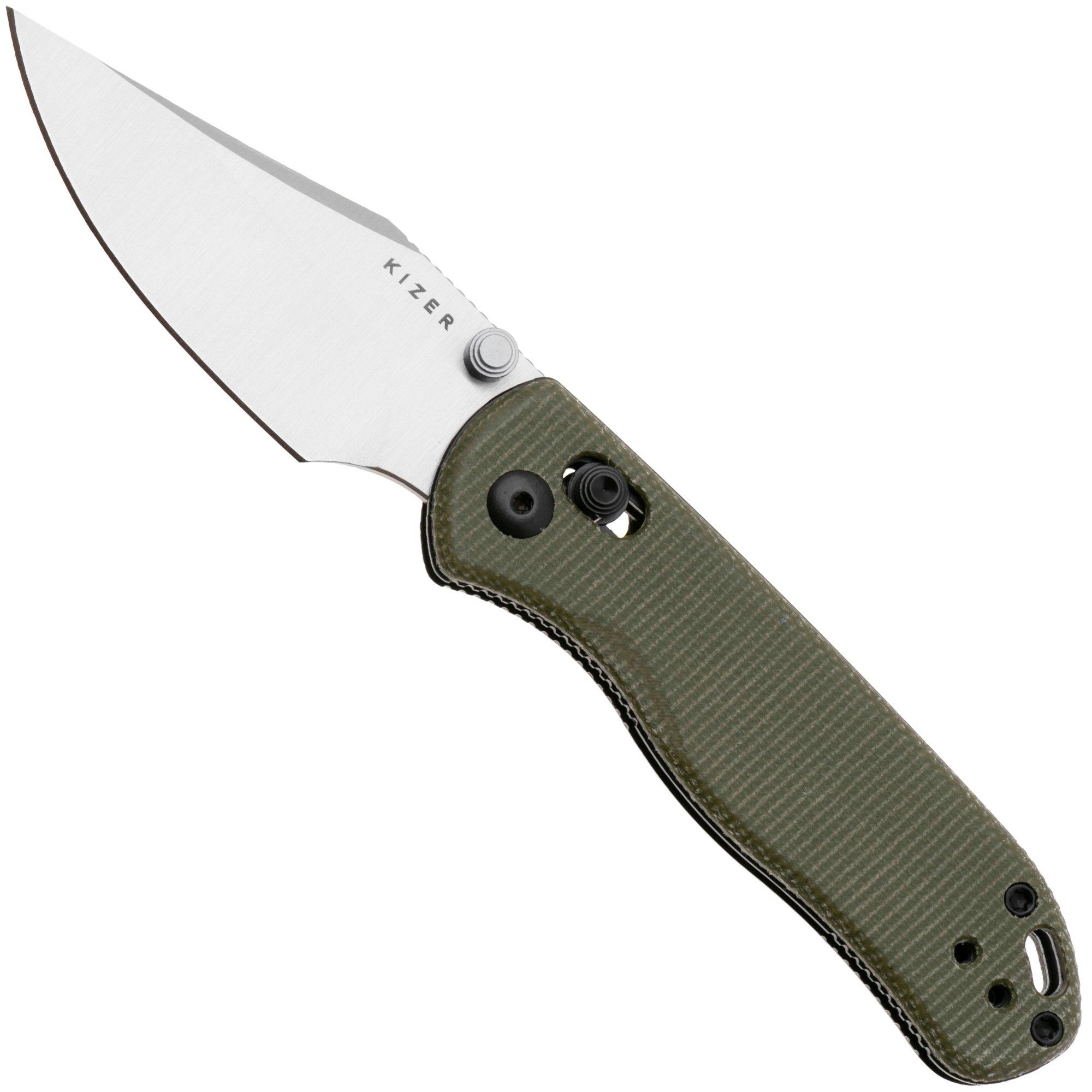 Kizer Vanguard Drop Bear 2, V3619-2KC1 Satin Nitro-V, Green Micarta, pocket knife, Azo design